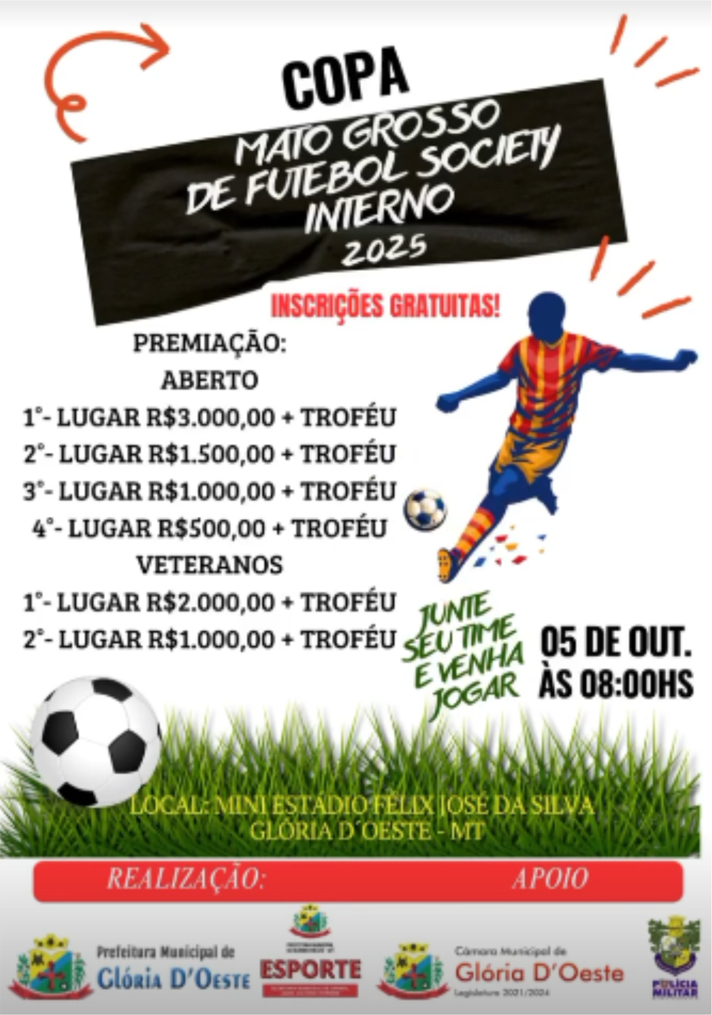 O torneio é promovido pela Prefeitura Municipal de Glória d’Oeste, por meio da Secretaria de Educação, Cultura, Esporte e Lazer, com apoio da Câmara Municipal e da Polícia Militar de Mato Grosso (PM-MT).