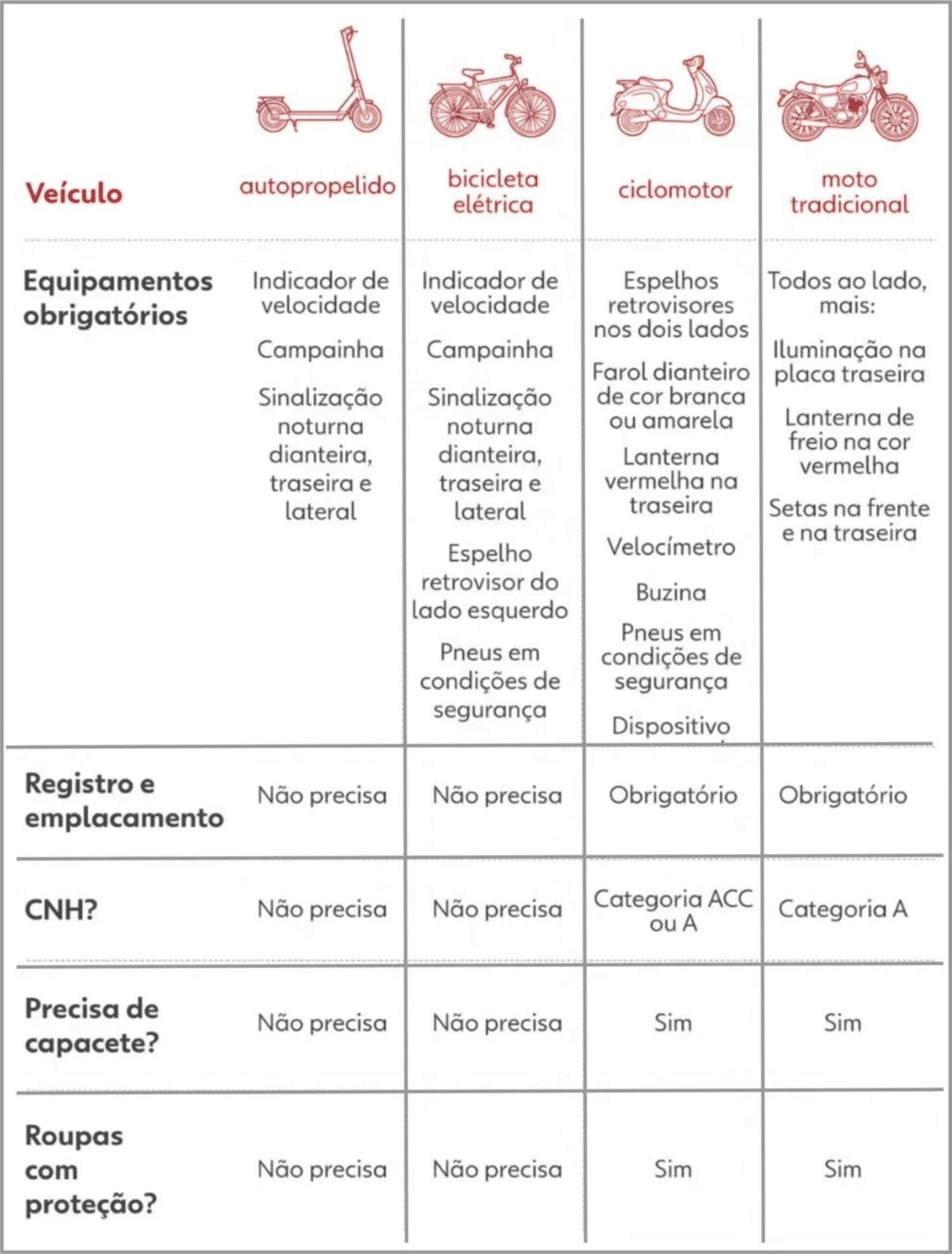 De acordo com o Contran, cada modalidade de veículo elétrico ou autopropelido possui regras específicas para circulação no Brasil, levando em conta fatores como potência do motor, velocidade máxima e finalidade de uso.
